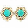 David Webb Turquoise and Diamond Cluster Gold Earrings