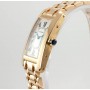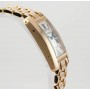 A beautiful and classic Cartier lady's 18k yellow gold small Tank Americaine wristwatch with a white dial and black Roman numerals. The watch has a quartz movement and the bracelet has an invisible double clasp. Model #W26015K2.