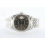 Rolex Date wristwatch in stainless steel, reference 1500. This classic Date model watch features an original gray color dial with silver stick markers, a smooth stainless steel bezel, a locking waterproof crown, a plastic crystal, and a stainless steel jubilee bracelet. Circa 1977. Case measures approximately 34 mm in with.